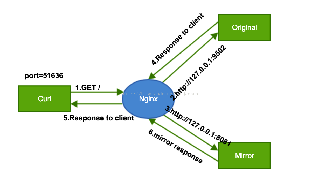 这个方案性能损耗小,7层转发请求,对转发出去的请求后的响应自动丢弃(happy)这就是mirror模块的好处。