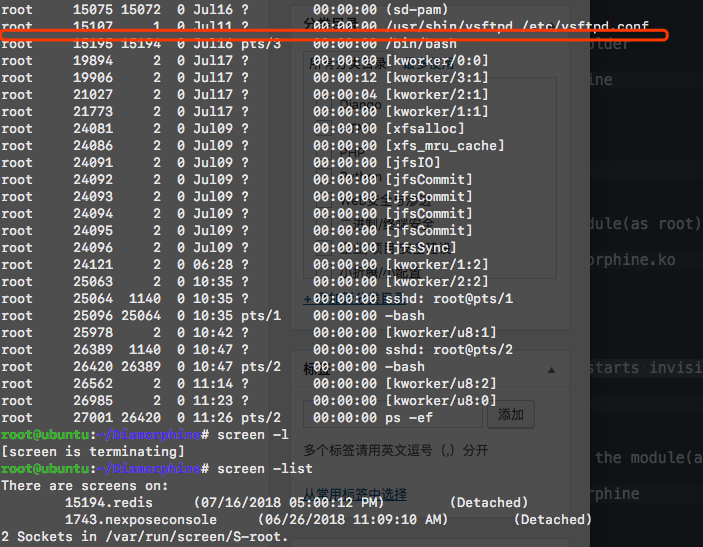 5.diamorphine 这个模块通过insmod安装后,系统启动时候是不会显示的,如果需要显示,需要执行
