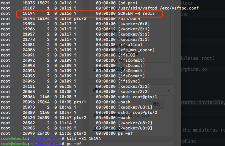 kill -63 0 #如果不执行kill -63 0,执行lsmod是查看不到有这个模块的,执行后再执行lsmod | grep diamorphine 即可看到这个模块。