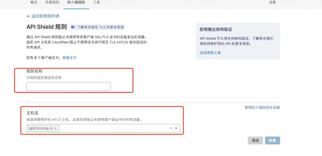 openssl pkcs12 -export -out xxxx.p12 -in xxxx.pem -inkey xxxx.key之后创建api shield规则,对需要双向认证的域名进行配置即可,一个证书可配置多个域名,也可以配置指定的接口,具体规则根据需求摸索....