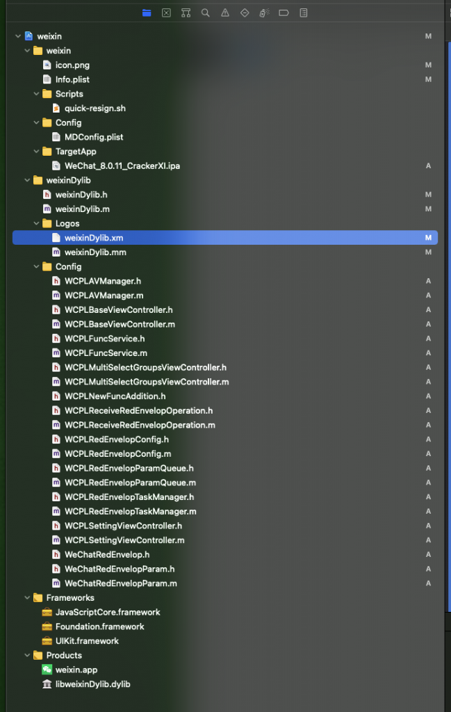 使用MonkeyDev 新建一个项目,然后导入代码,编辑。